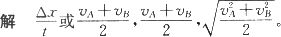 一物体做匀加速直线运动,先后通过位移为xA、xB的A、B两点,经A点时速度是vA,经B点时速度是vB,历时为t.则该物体通过AB段的平均速度为________或________.通过AB段的时间中点时的瞬时速度为________.通过AB段位移中点的瞬时速度为________.