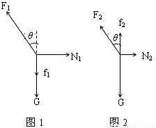 解答:解:当物体上滑时,静摩擦力沿墙壁向下此时力F较大,设为F1.物体的受力图如图1.