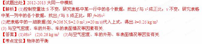 (1)由上述数据可得汽车风阻f 与汽车正面投影面积S 及汽车行驶速度v 的关系式为f=________(要求用k表示比例系数).