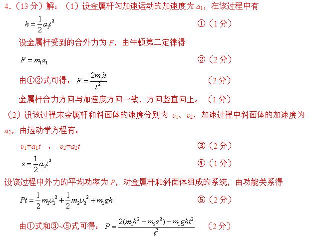 (2013年4月湖北省黄冈市模拟)如图所示,光滑金属直杆穿过竖直固定的滑套,其底端置于光滑斜面体上,金属杆质量为m1,斜面体质量为m2,现给斜面体一水平推力使斜面体从静止开始向右作匀加速直线运动,经t时间斜面体水平移动s,该过程中斜面体未碰到滑套,金属杆匀加速上升h高度,重力加速度为g,求: