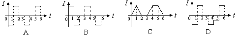 一矩形导体线圈位于随时间t变化的匀强磁场内,磁场方向垂直线圈所在平面向里,如图1所示。磁感应强度B随t的变化规律如图2所示。以I表示线圈中的感应电流,以图1中线圈上箭头所示的电流方向为正,则以下的I—t图中正确的是 ( )
