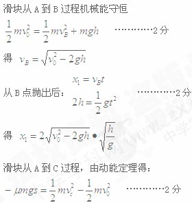 如图,AB为一光滑固定轨道,AC为摩擦因素μ=0.25的粗糙水平轨道,D为水平地面上的一点,且B、C、D在同一竖直线上,已知B、C两点的高度差为h, C、D两点的高度差也为h,AC两点相距s=2h。两滑块从A点以相同的初速度
