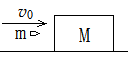 如图,将质量为m的子弹,以水平速度v0射向静止在光滑水平面上质量为M的木块,第一次将木板固定不动,子弹刚好可以打穿木块,第二次撤去外力,让木块可以自由滑动,子弹打入木块三分之一深度就相对木块静止,求M与m的比值。