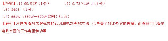 (4)如果在用电高峰时间内用电热水壶烧水,电压只有200V左右,这时电热水壶发热时的功率大约是多大? (1分)