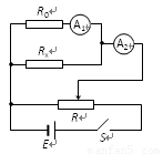 【解析】将电流表A1串联定值电阻R0作为电压表,电流表A2外接。设计成分压电路,如图所示。