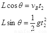 设小球第一次落在斜面上为F点,BF长为L,小球从B点到F点时间为t2