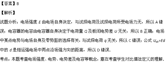 D.由Uab=Ed可知,匀强电场中的任意两点a、b间的距离越大,则两点间的电势差也一定越大