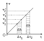 【解答】两小球都是自由落体运动,可在同一v-t图像中作出速度随时间的关系图线,如图所示.设人在3楼阳台上释放小球后,两球落地时间差为Δt1,图中阴影部分的面积Δh等于两个小球之间连线的长度.若人在4楼阳台上释放小球后,两球落地时问差为Δt2,要保证阴影部分面积也是Δh,从图中可以看出一定有Δt2<Δt1,故选C选项.