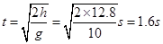 可以算出悬链下端落至12.8m处,下落的高度为h1=7.2m,所用的时间是1.2s, 悬链上端下落至12.8m处所用的时间是