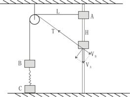 如图所示,竖直光滑的杆子上套有一滑块A,滑块通过细绳绕过光滑滑轮连接物块B,B又通过一轻质弹簧连接物块C,C静止在地面上。开始用手托住A,使绳子刚好伸直处于水平位置但无张力,现将A由静止释放,当速度达到最大时,C也刚好同时离开地面,此时B还没有到达滑轮位置.已知:mA=1.2kg, mB=1kg, mc=1kg,滑轮与杆子的水平距离L=0.8m。试求: