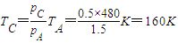 如图所示,一定质量的理想气体从状态A变化到状态B,再从状态B变化到状态C.已知状态A的温度为480K.求:(1)气体在状态C时的温度;