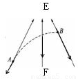 点评:此题要根据轨迹的弯曲方向判断出电场力方向.物体做曲线运动时,合力指向轨迹弯曲的内侧.