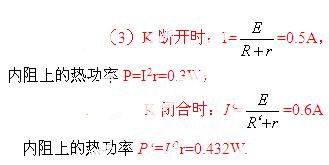 (3)电键K断开和闭合时内阻上的热功率P及P‘?