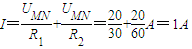(2)R1与R2并联,其电压为UMN=2UAO=20V