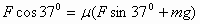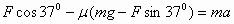 解:设木箱的加速度为a, 斜向下推时: 斜向上拉时: 以上两式联立,得: |