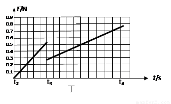 取t3时刻为零时刻,可以写出t3时刻后的I与时间的关系式,I=0.5 t ,代入上面的式子可以得到F=0.25+0.5t画在坐标系里。(图中图线作为参考) (4分)
