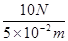则此时弹簧长度为l=l0-x=10cm-2.5cm=7.5cm
