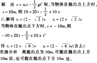 在某一高处以v0=20 m/s的初速度竖直向上抛出一物体,经过离抛出点10 m时,则从抛出后须经历的时间可能为(g取10 m/s2)
