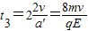设粒子在Ⅲ区域电场中运行时间为t3,则牛顿第二定律得