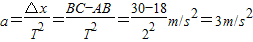 解答:解:(1)根据△x=aT2,可得