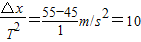 解答:解:根据△x=aT2得: