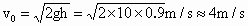某同学身高1.8m,在运动会上他参加跳高比赛,起跳后身体横着越过了1.8m高的横杆.据此可估算出他起跳时竖直向上的速度大约为(g取
