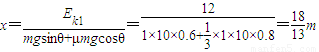 假设小球经过B点后,还能沿AB上升x,由动能定理:0-Ek1=-mgxsinθ+(-μmgcosθx)