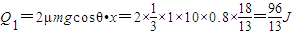 在AB杆上,由于mgsinθ>μmgcosθ,所以小球将再次下滑,在AB杆上因摩擦而发的热: