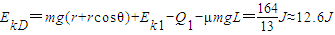 当小球第二次回到D点时,由能量守恒得:mg(r+rcosθ)+Ek1=Q1+μmgL+EkD