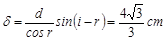 。求出射光线CD相对于入射光线AB偏离的距离。