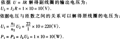 一理想变压器,原、副线圈的匝数之比为22∶1,在副线圈上接一个10 Ω的电阻,通过它的电流强度为1 A,则原线圈的电压为________V,输入功率为________W.