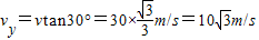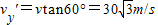 (2)当物体的速度和水平方向的夹角为60°时,竖直方向上的分速度: