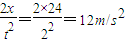 一个物体置于光滑的水平面上,受到6N水平拉力作用从静止出发,经2s,物体的位移为24m.(g取10m/s2)求:(1)物体运动的加速度是多大?