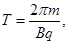 对于给定的加速电压,即U一定,则带电粒子的比荷q/m越大,磁感应强度B应越小,A错误,B正确;带电粒子运动周期为