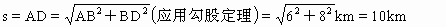 由图中几何关系,人行走过程中的位移大小为