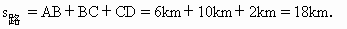 某人向东行6km,再向北行10km,又向南行2km,则此人的路程和位移的大小是_______km和_______km.