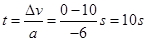 解:(1)以初速度方向为正方向,则有a= -6m/s2