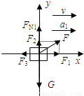 物体共受到四个力的作用:重力G,拉力F,支持力FN1,滑动摩擦力F3,建立图示坐标系,由牛顿第二定律F合=ma