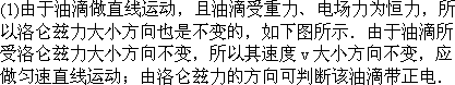 (1)油滴带什么电荷?油滴做匀速直线运动还是匀变速直线运动?请说明理由;