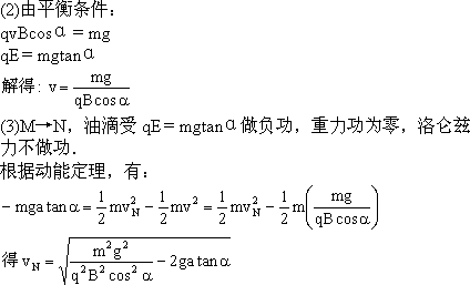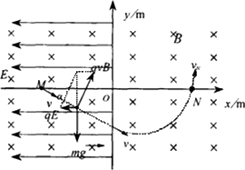 (3)油滴进入x>O区域,若能到达x轴上的N点(在图中未标出),油滴在N点时速度大小是多少?