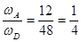 【解析】可组合出4种;当A轮与D轮组合时,两轮的线速度相等,则角速度之比为