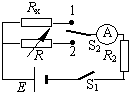 ¢Ùµç·ÈçͼËùʾ£®¢ÚÊ×ÏȱպÏS1£¬Ôٰ嶯¿ª¹ØS2Óë1ÏàÁ¬£¬Ê¹´ý²âµç×èRx½ÓÈëµç·£¬¶Á³öµçÁ÷±íµÄʾÊý£»Ôٰ嶯¿ª¹ØS2Óë2ÏàÁ¬£¬Ê¹µç×èÏäR½ÓÈëµç·£¬µ÷½Úµç×èÏ䣬ʹµÃµçÁ÷±íʾÊý»Ö¸´³É¸Õ²ÅµÄ´óС£¬¶Á³öµç×èÏäµç×èµÄÊýÖµ£¬´ËÊýÖµ¼´ÎªRxµÄ×èÖµ£®
