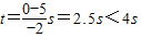 【答案】分析:根据匀变速直线运动的速度时间公式先求出物体在水平面上速度减为零的时间,因为物体速度为零后不再运动,再根据位移时间公式求出位移的大小.