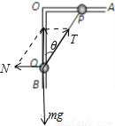 【答案】分析:先对小环Q受力分析,受到重力、支持力和拉力,跟三力平衡条件,求出拉力的表达式;在对P、Q两个小环的整体受力分析,根据平衡条件再次列式分析即可.