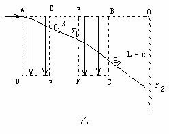(3)现将电场分成AEFD和EBCF相同的两部分,并将EBCF向右平移一段距离x(x≤L),如图乙所示。设粒子打在荧光屏上位置与O点相距y,请求出y与x的关系?
