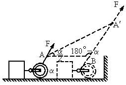 如图所示,与水平方向成α角的恒力F通过绕过固定在物体上的光滑滑轮的细绳,拉物体沿水平面移动l,求F力所做的功.