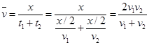物体沿直线A到B,前一半位移以速度v1匀速运动,接着的后一半位移以速度v2匀速运动,则全程的平均速度是