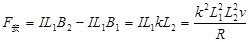 ⑵ 回路电动势E=B2L1v-B1L1v=(B2-B1)L1v =k L2 L1v (5分)