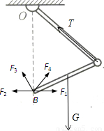 解答:解:对AB杆受力分析,受OA杆的拉力T,重力G,以及F1、F2、F3和F4中的一个,如图