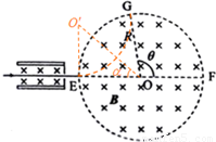 由题设,离子从磁场边界上的点G穿出,离子运动的圆周的圆心O'必在过E点垂直于EF的直线上,且在EG的垂直一平分线上(见图).